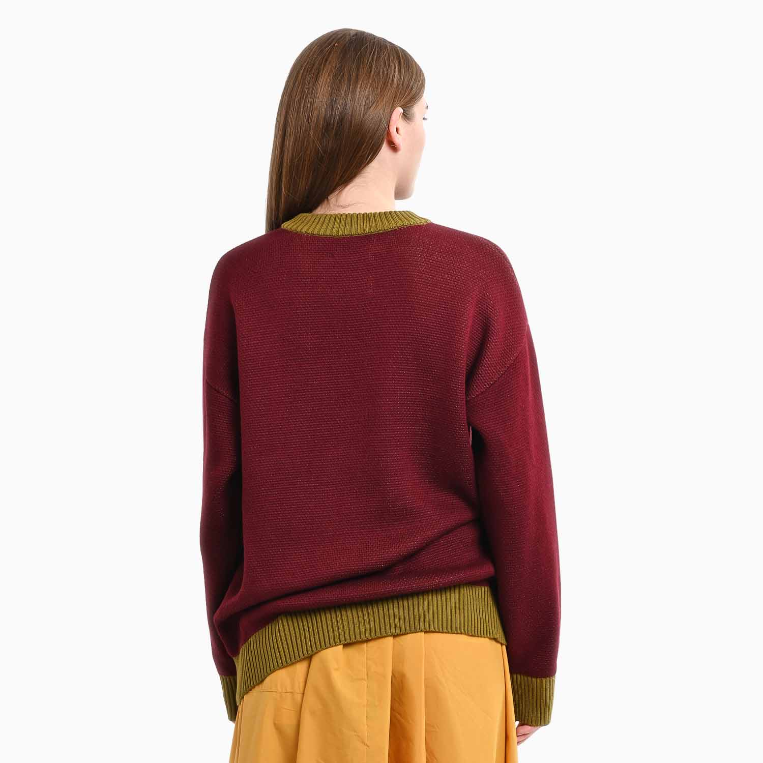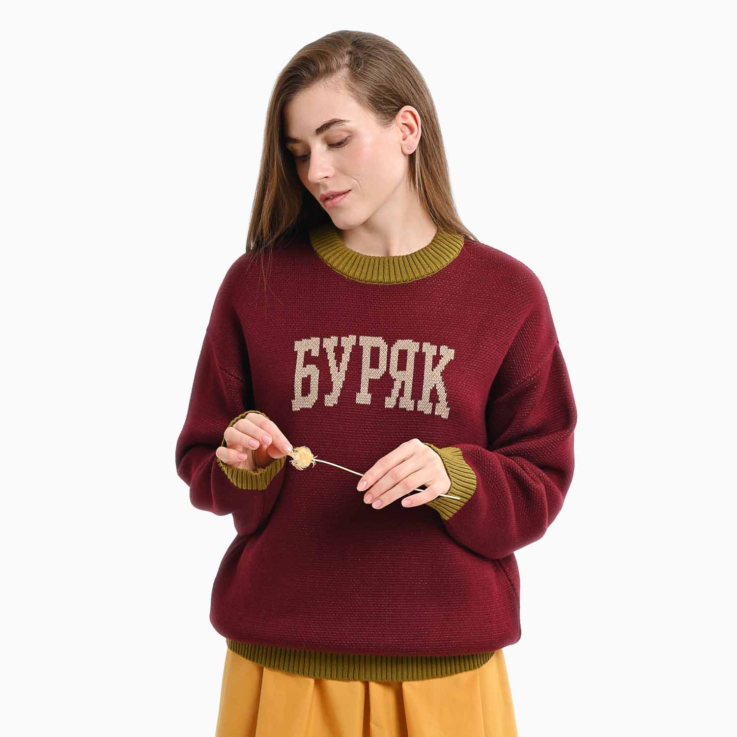 Светр містить натуральну бавовну, тому з часом можливе скочування — його легко прибрати машинкою для видалення ковтунців. Щоб уникнути зношення, не рекомендуємо носити його під верхнім одягом із грубими підкладками, блискавками або жорсткими елементами.