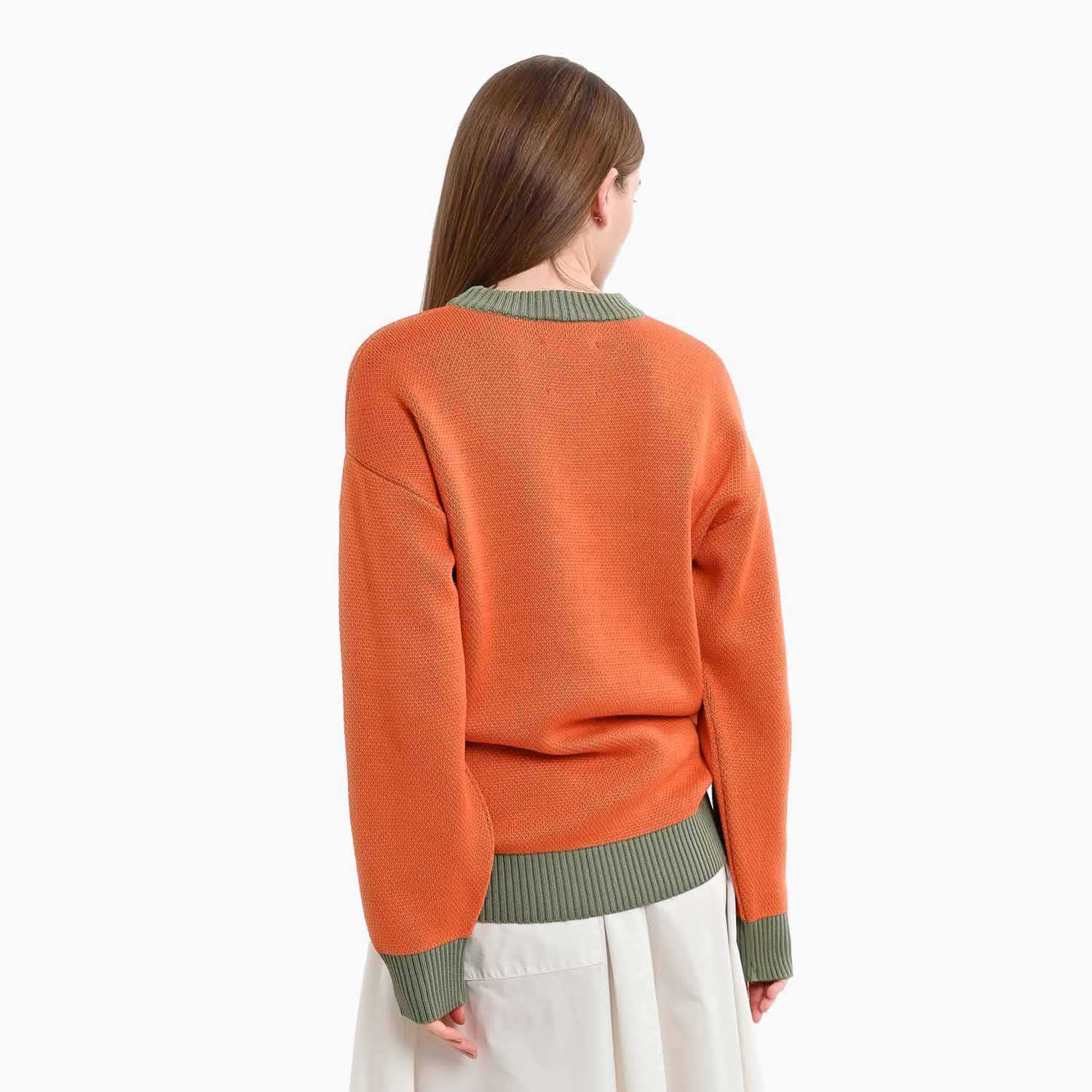 Светр містить натуральну бавовну, тому з часом можливе скочування — його легко прибрати машинкою для видалення ковтунців. Щоб уникнути зношення, не рекомендуємо носити його під верхнім одягом із грубими підкладками, блискавками або жорсткими елементами.