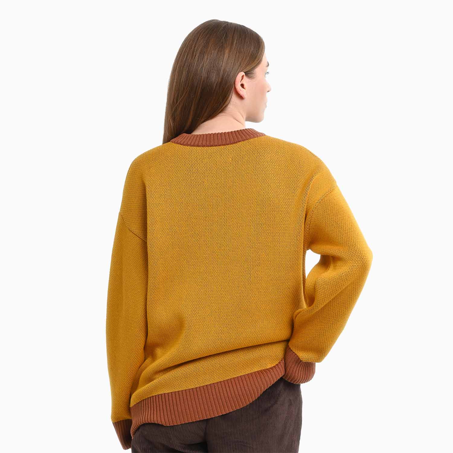 Светр містить натуральну бавовну, тому з часом можливе скочування — його легко прибрати машинкою для видалення ковтунців. Щоб уникнути зношення, не рекомендуємо носити його під верхнім одягом із грубими підкладками, блискавками або жорсткими елементами.