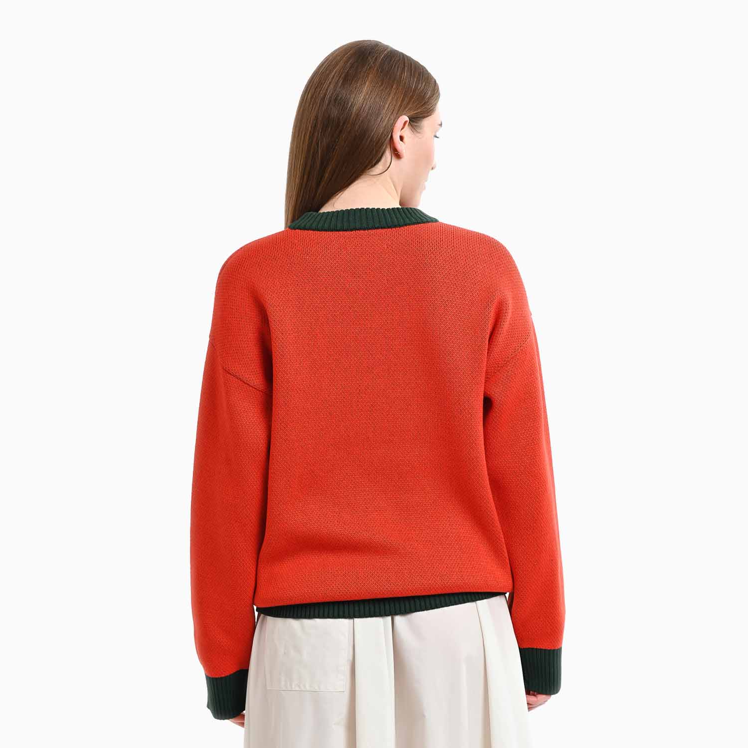 Светр містить натуральну бавовну, тому з часом можливе скочування — його легко прибрати машинкою для видалення ковтунців. Щоб уникнути зношення, не рекомендуємо носити його під верхнім одягом із грубими підкладками, блискавками або жорсткими елементами.
